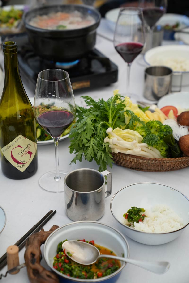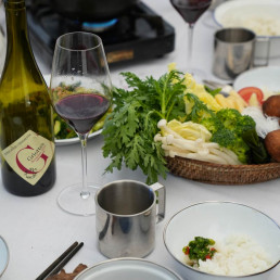 A menu carefully composed of tree dishes cooked with care by our chef. Candlelit meal served on plate, silver cutlery, along with red wine from France, but also our Cuvée Liotard.