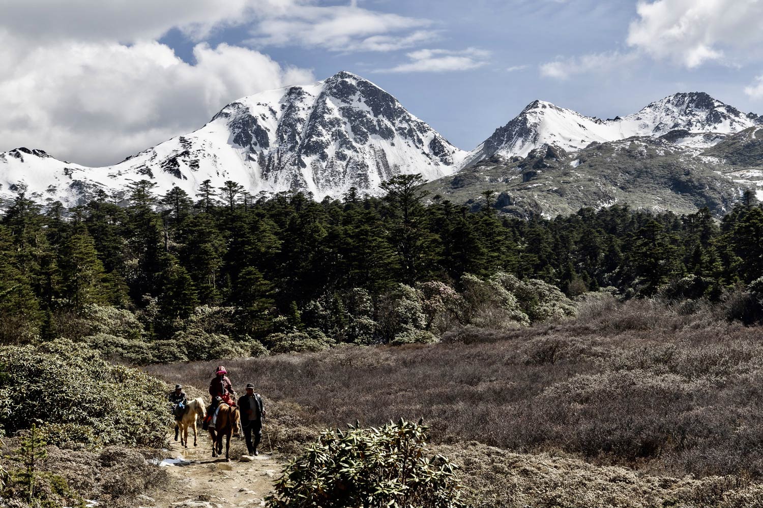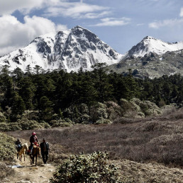 A car picks you up at your hotel in the early afternoon and drives you from Shangri-la Old Town to Farm Liotard in Zuomogu village, which is the starting point of the caravan. The caravan crosses the Ringha valley until the first pass at 3,790 m, with an excellent sight line to Mount Sikha. We’ll stay overnight at the Monk Grassland at 3,690 m.