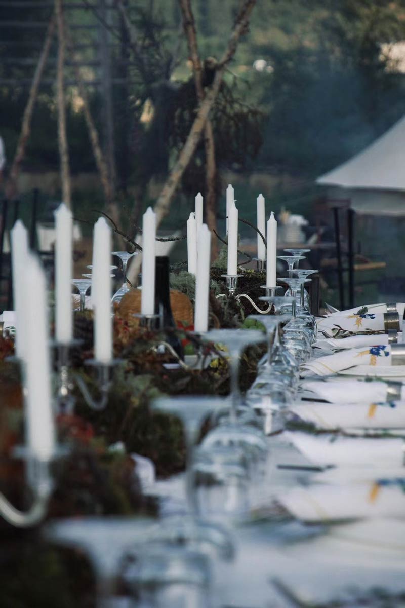The Tibetan lounge at the Farm Liotard provides seating for more than twenty guests around a colorful table of food. Cosily installed on old chairs, the place is decorated with carpets, tablecloths, candlesticks, Limoges, silverware, dishes and bottles.