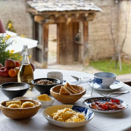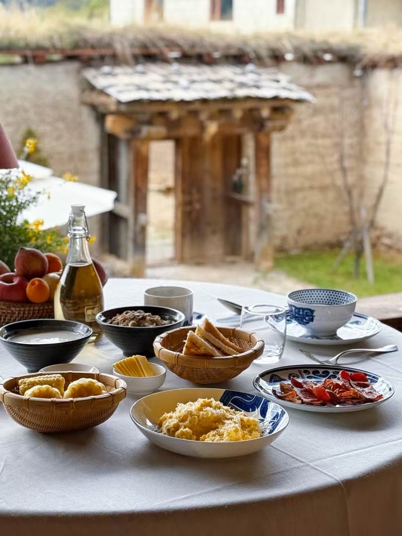 Served on the terrace if the weather permits, otherwise in the new building of the Farm. Includes coffee and tea from Yunnan, bread with by butter, jam, egg dishes, muesli, milk and yogurt, fruit basket and orange juice.