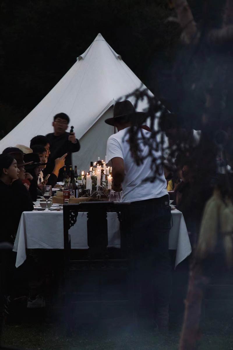A EVENT DAY for up to one hundred guests in the Ringha Valley where the Farm Liotard is located. In the morning, it is an exceptional and real discovery of Shangri-la and its old town, a lunch at the Flying Tigers Café followed by a crossing of the Ringha valley on horseback to relive the mythical universe of the Tea Road . Visit the Ringha temple and at the end of the afternoon arrival at the Farm where a welcome tea time is served around the camp. Introduction and lecture by Constantin de Slizewicz on the theme of explorers of the last century and the myth of Shangri-la, followed by an aperitif with local charcuterie, dinner presented on a long table in the large Tibetan lounge then vigil around the fire with Tibetan singers and dancers. Possibility to spend the night in tents.
