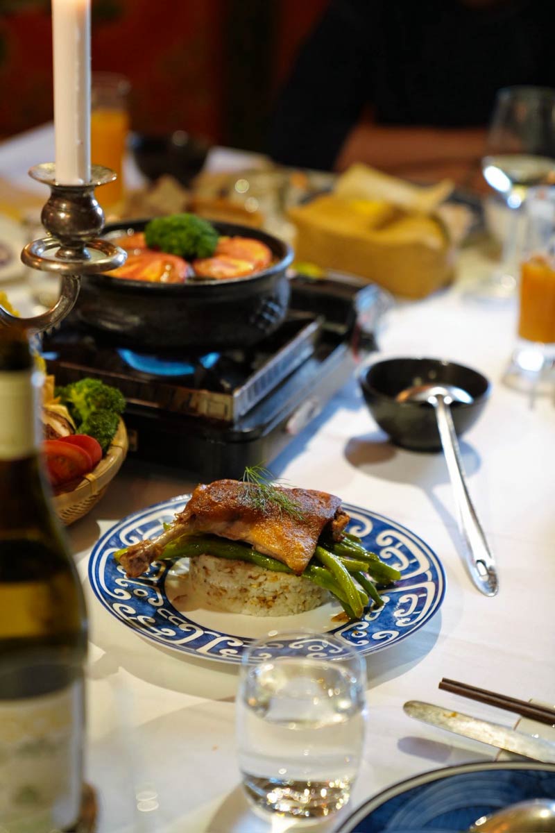 8:00 pm – 10:00 pm: Dinner in the large Tibetan lounge with long tables. Carefully decorated, elegant table, European cuisine with local products and French wine.