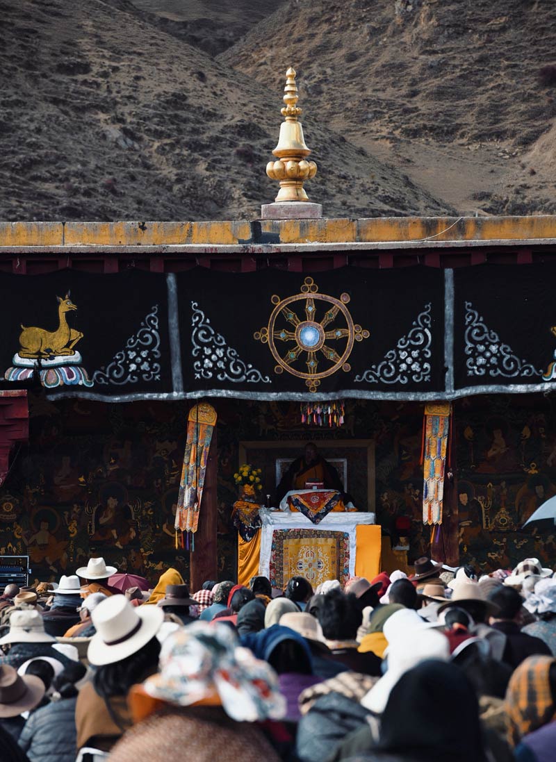 LE MONT GEYEN CULMINANT À 6 200 MÈTRES, est une montagne sacrée majeure du Kham. Cette caravane propose une demi-circumambulation de son massif, dans l’esprit des grands voyages tibétains, où l’on progresse jour après jour autour de la montagne. Les paysages se succèdent sans jamais se répéter : alpages infinis, rivières glaciaires, vallées secrètes et forêts de cyprès tibétains millénaires. Chaque campement est choisi avec soin, face aux sommets ou à l’orée des bois. Plus qu’un trek, il s’agit d’un cheminement, rythmé par la marche, les rencontres et la présence constante de la montagne, avec des campements dignes des explorations d’antan.
